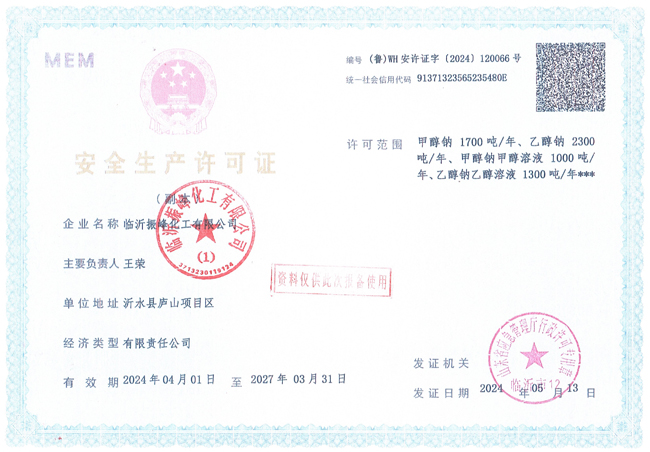 臨沂振峰化工有限公司安全生產(chǎn)許可證副本
